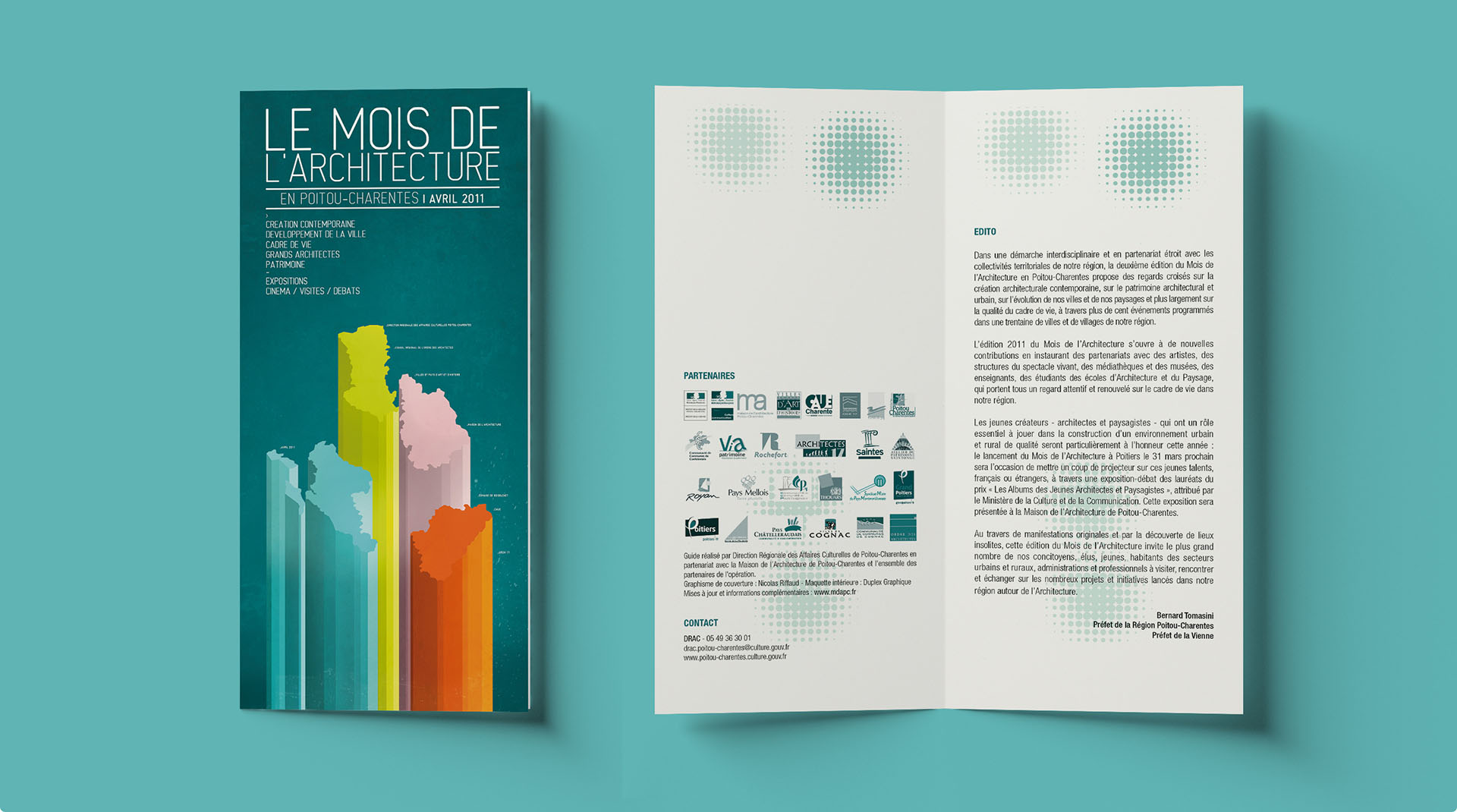I supported the DRAC Nouvelle-Aquitaine over several years, as part of an institutional communication campaign aimed at highlighting contemporary architecture, architectural heritage and urban development, the evolution of cities and landscapes and also the quality of the living environment through events spread throughout the Poitou-Charentes region.