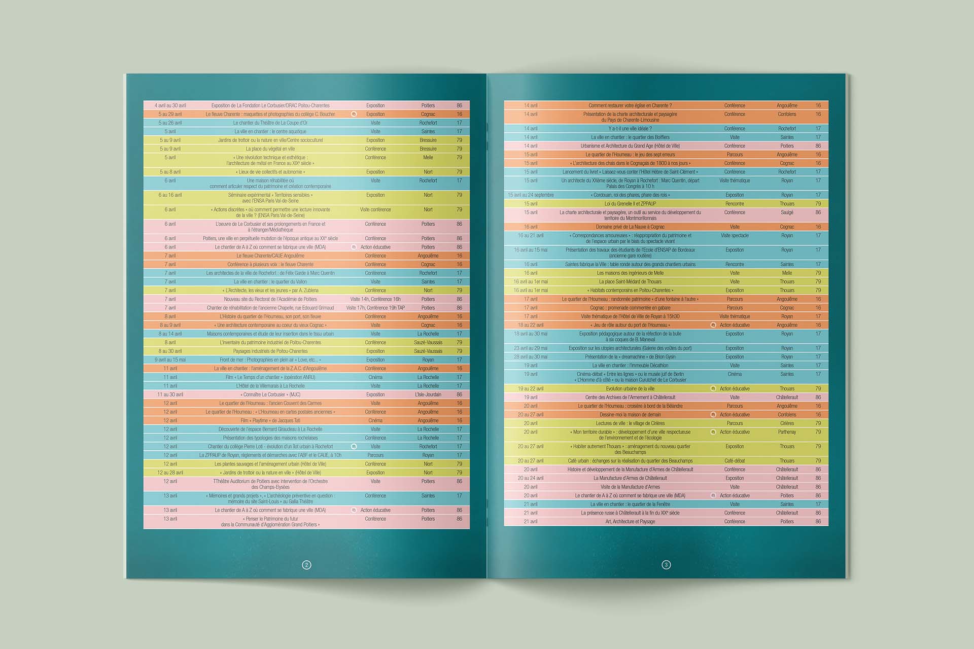 The association with a color code made it possible to better distinguish them and articulate the content according to the programming of events by department.